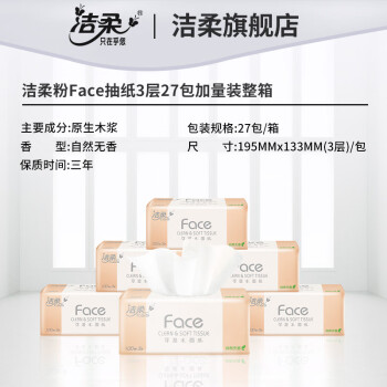 洁柔Face抽纸3层100抽27包整箱可湿水面巾纸