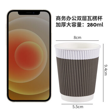 一次性纸杯防烫双层隔热瓦楞杯280ml*50只装