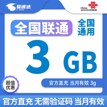 中国联通流量包3GB全国通用流量当月有效