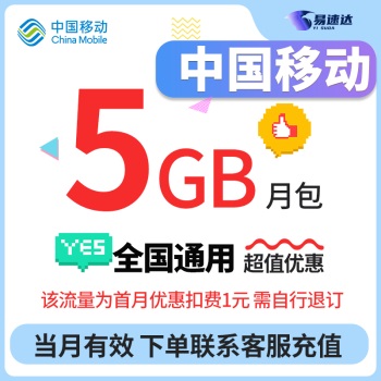 中国移动全国移动5GB流量包当月有效