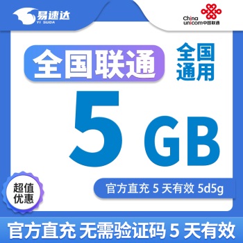 中国联通全国通用流量包5GB流量5天有效