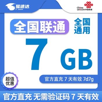 中国联通全国通流量包7GB流量7天有效