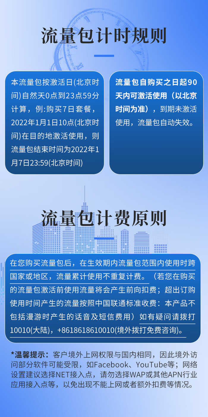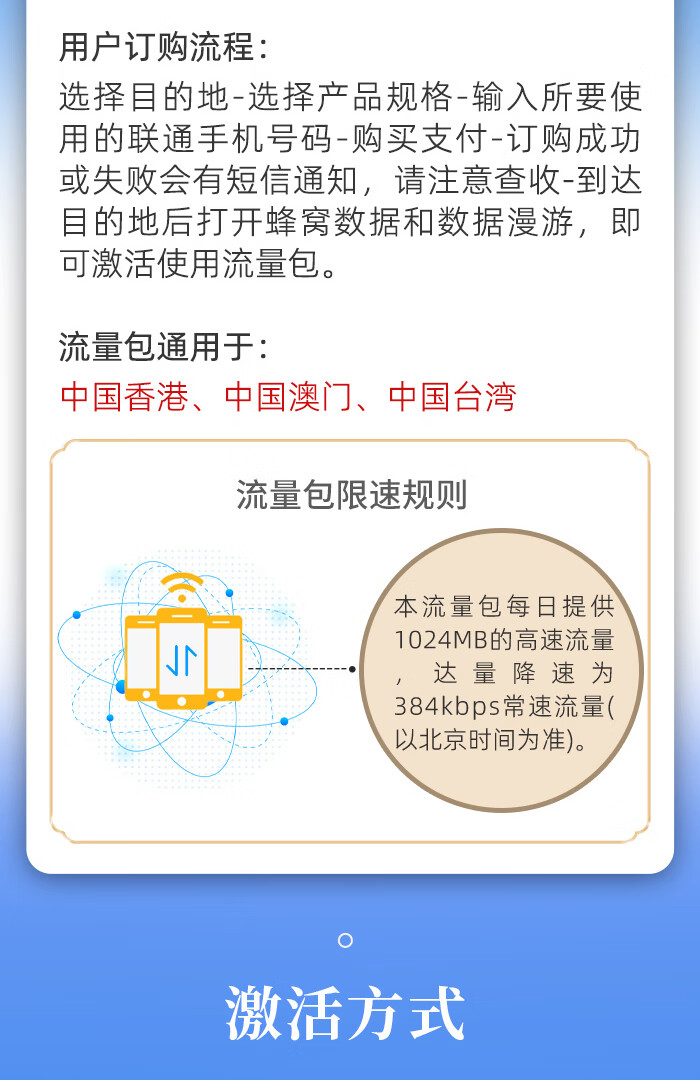 港澳台联通国际漫游包天流量 1天1G-不限量+用完即止