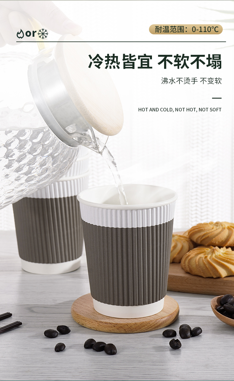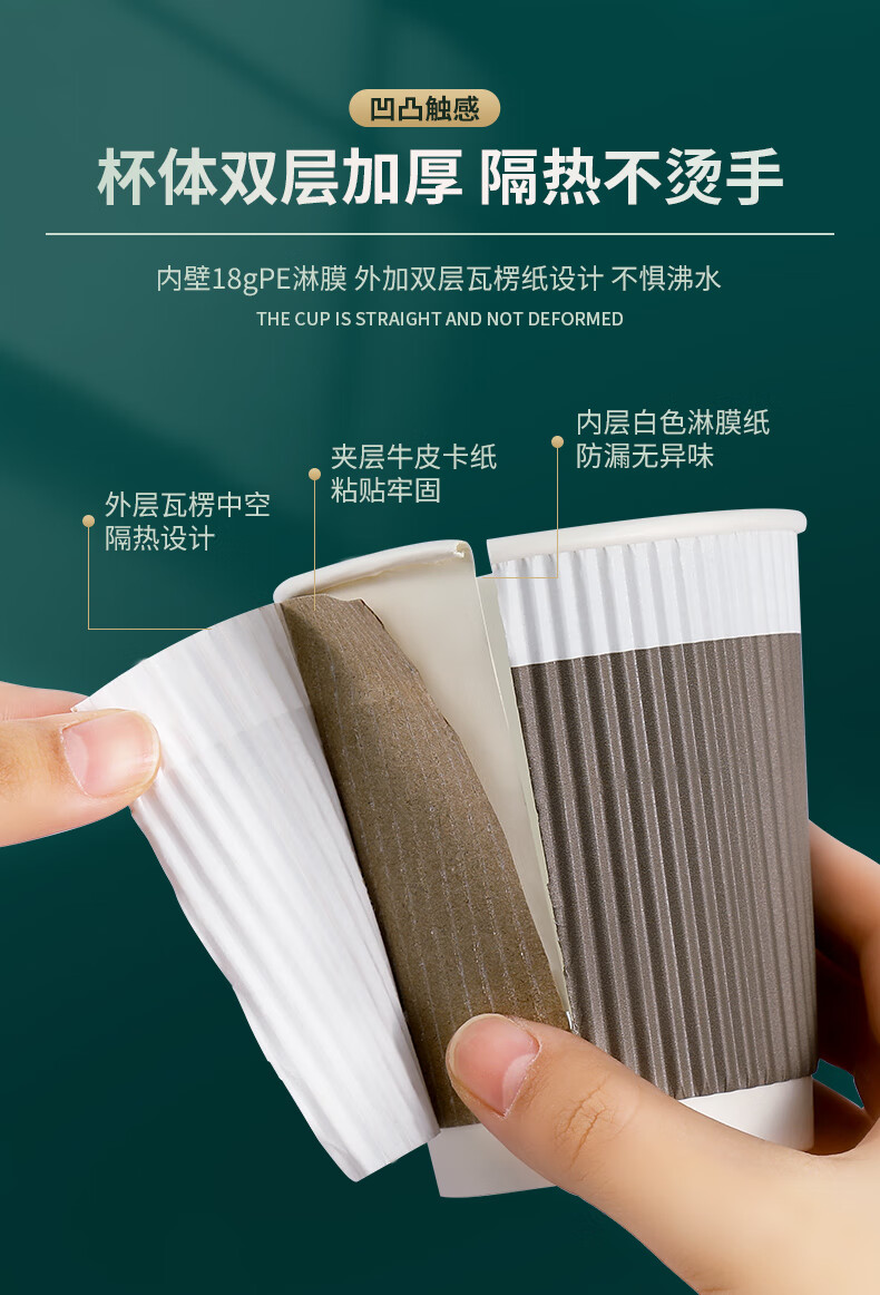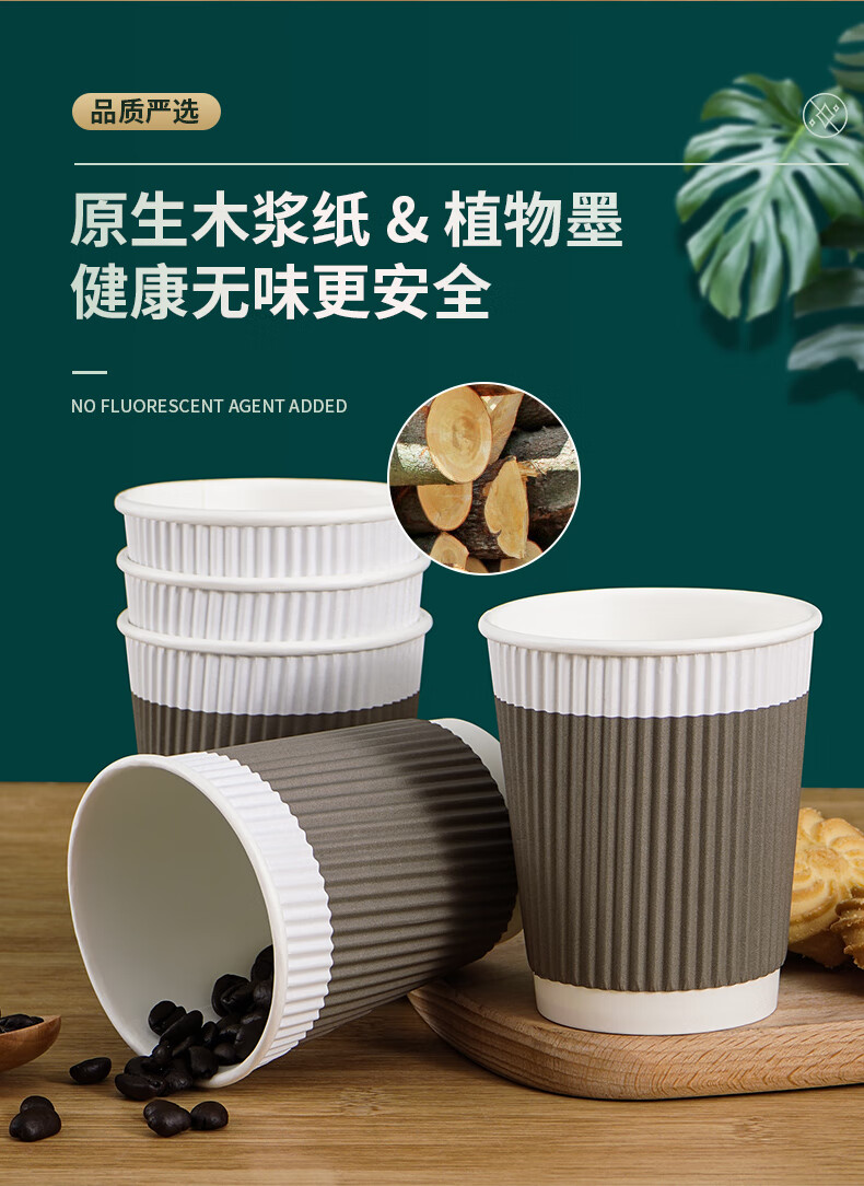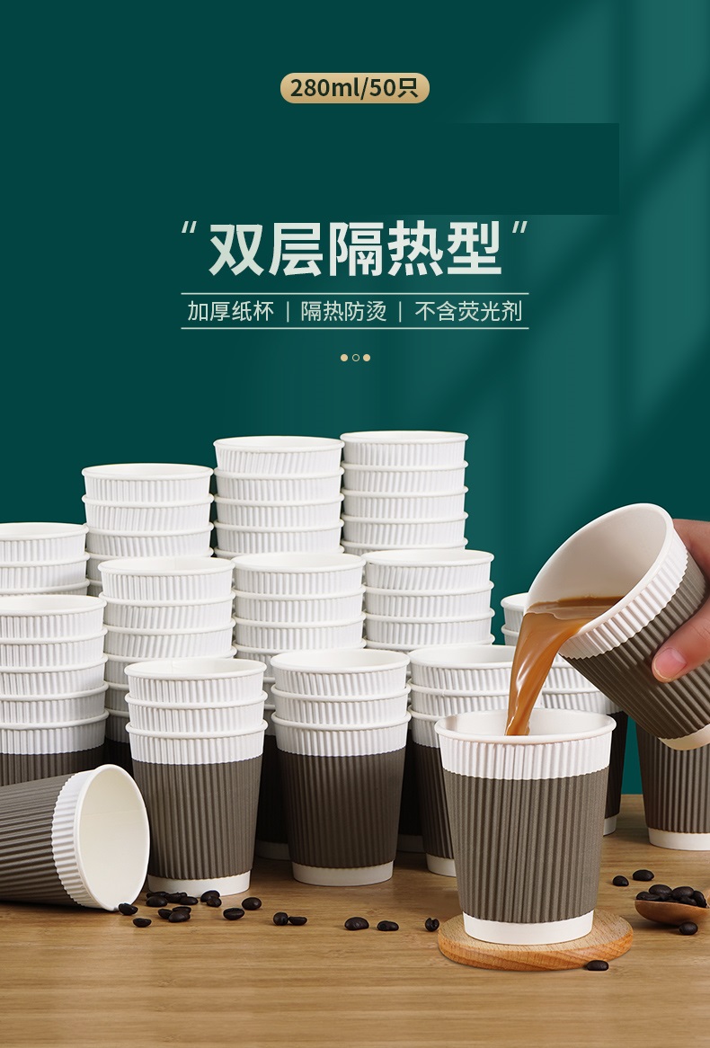 一次性纸杯防烫双层隔热瓦楞杯280ml*50只装