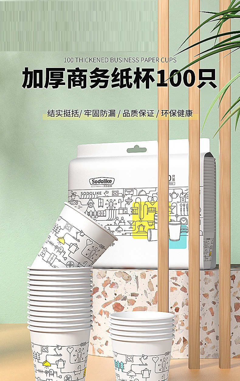 一次性纸杯 230ml加厚纸杯整箱100只装