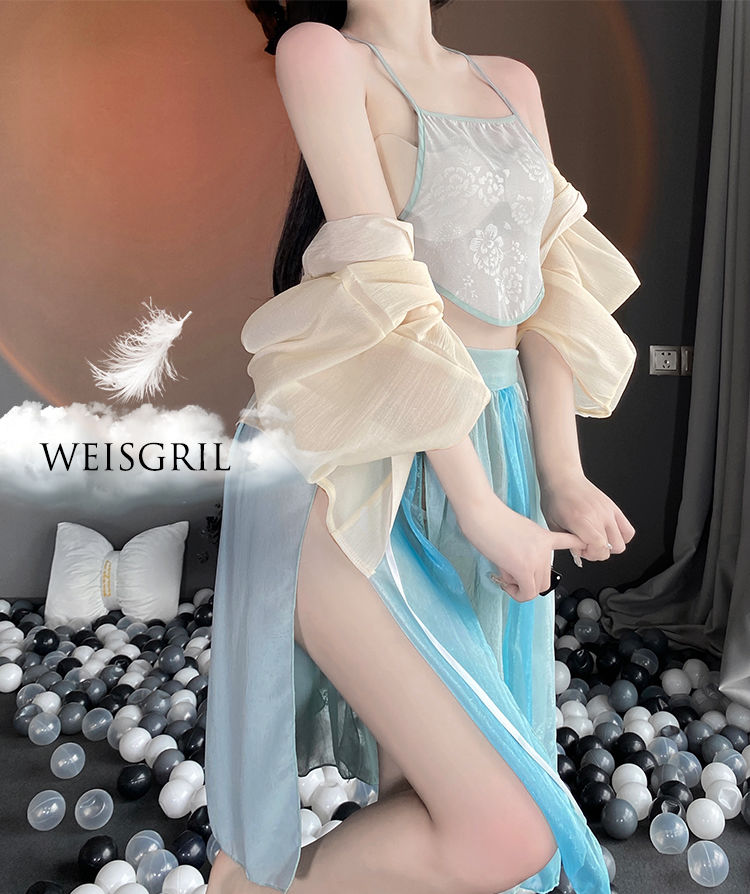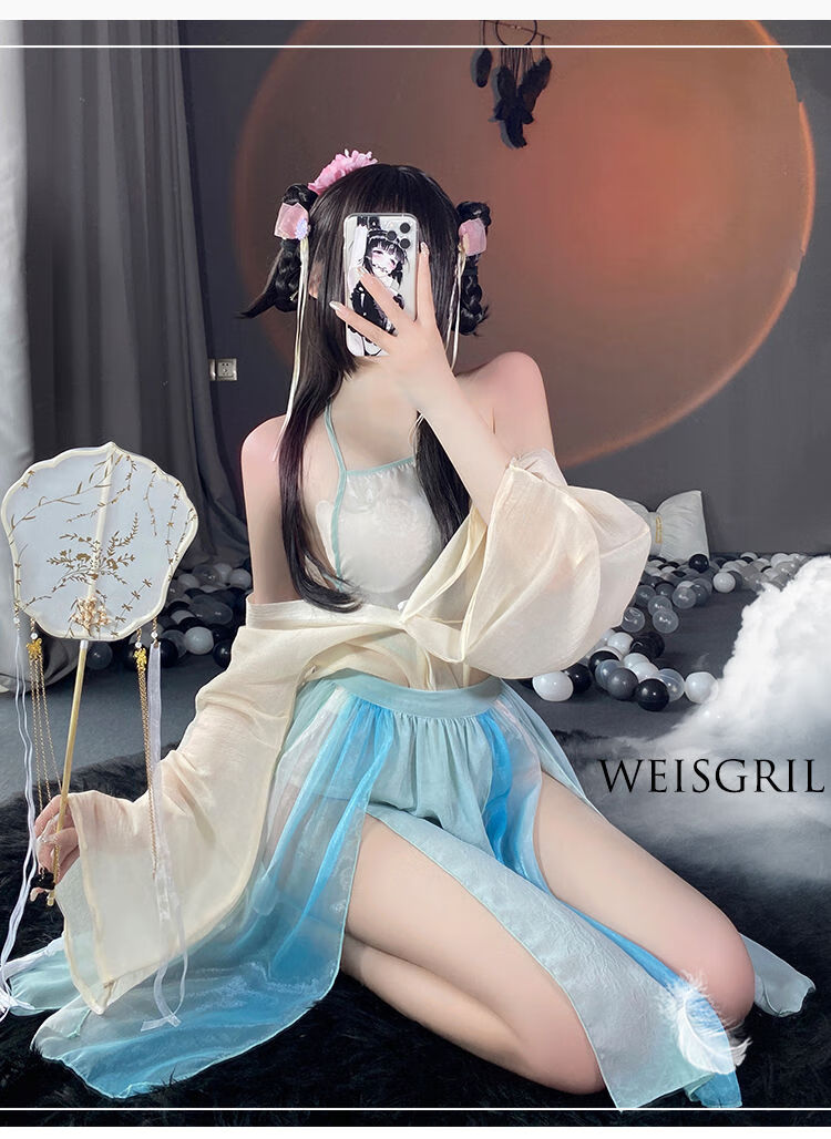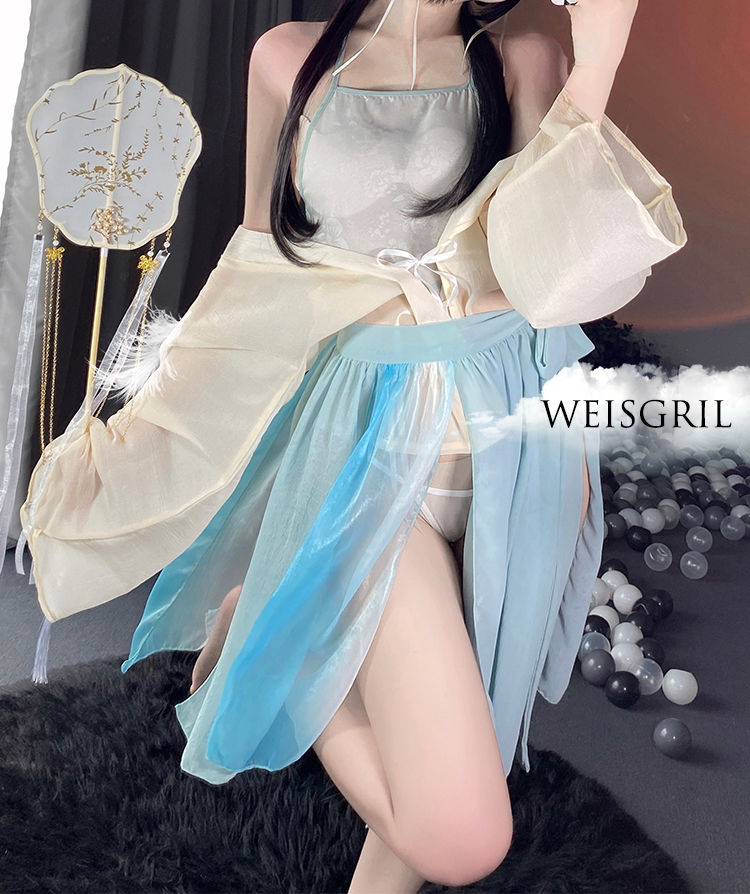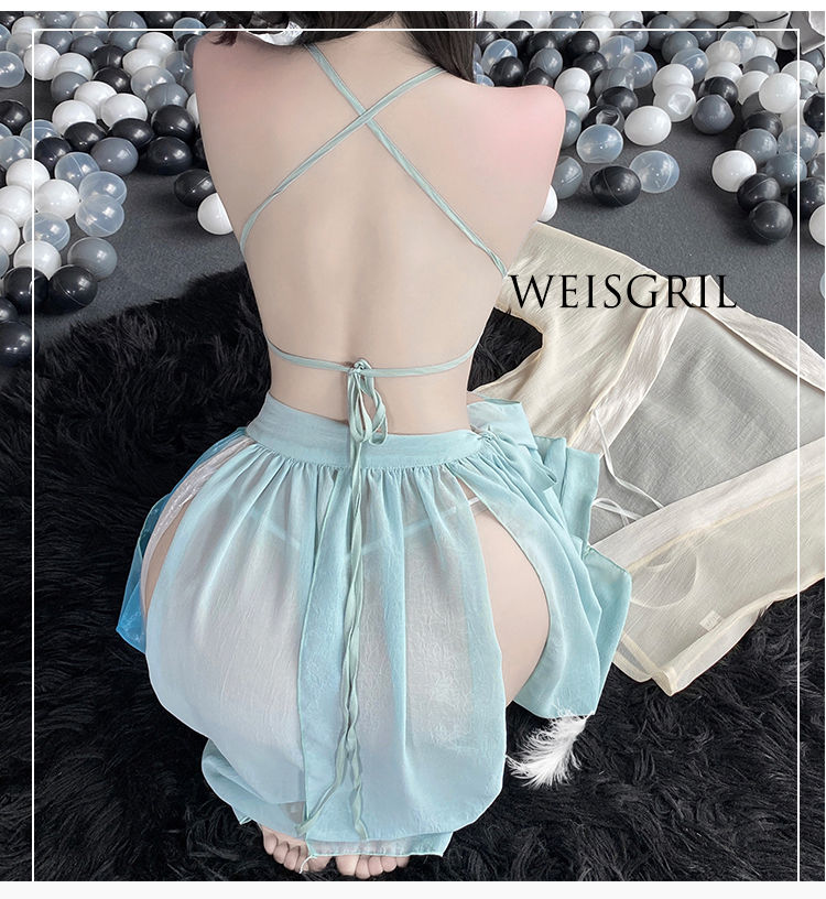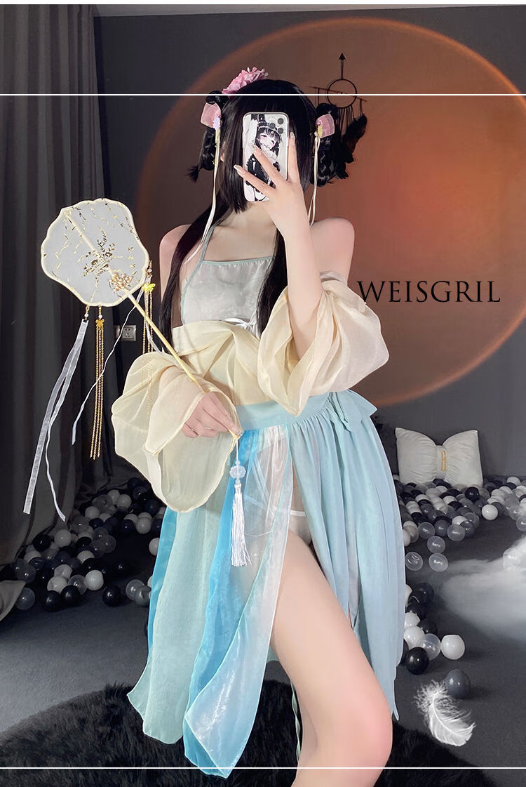 卡维妲新品情趣汉服古装睡衣红绿[外罩+星星肚兜+T裤+裙]