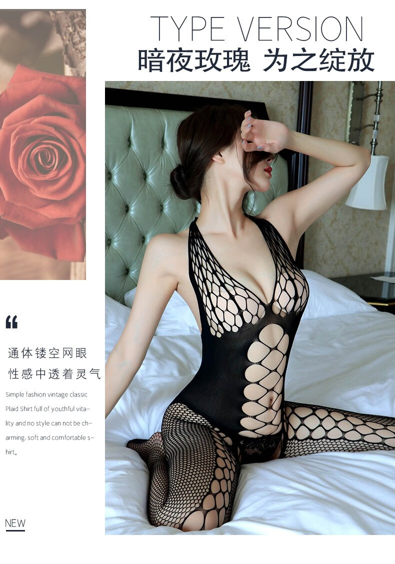 网格女式内衣网袜开档连体网衣镂空睡衣 黑色