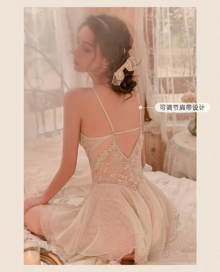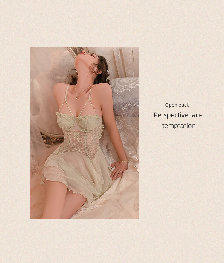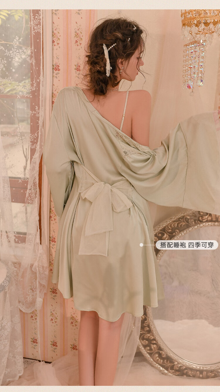 蕾丝睡衣新款薄款纯欲风带胸垫女士吊带睡裙 奶油绿