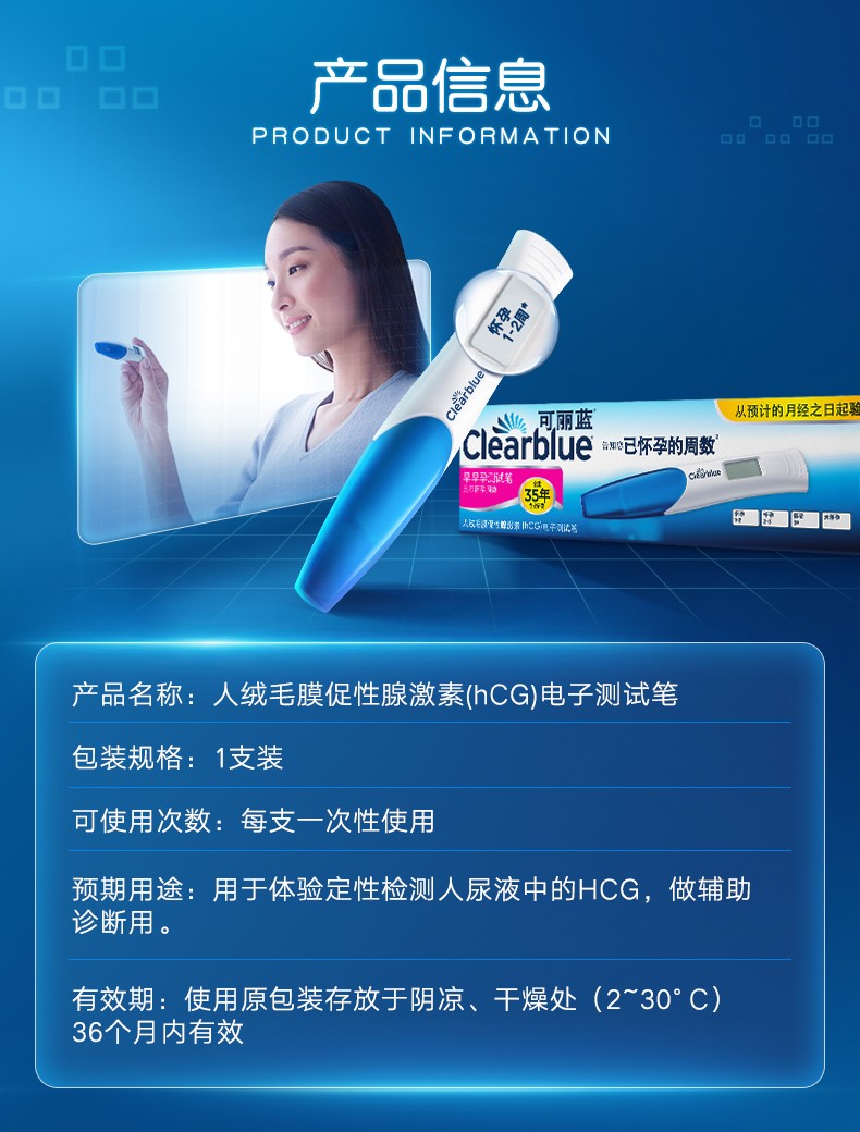 电子验孕笔验孕棒测试笔HCG数字显示怀孕周数2支